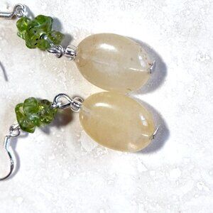 2/$20, Genuine Golden Healer Quartz & Green Peridot Gemstone Silver Earrings