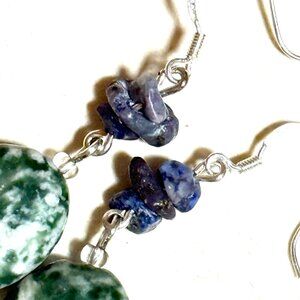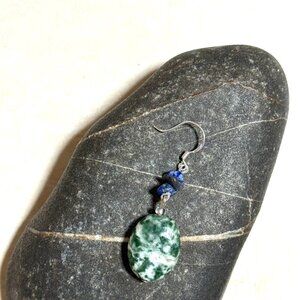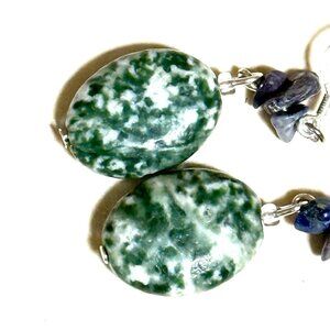 2/$20, Genuine Green Tree Agate & Lapis Lazuli Gemstone Sterling Silver Earrings