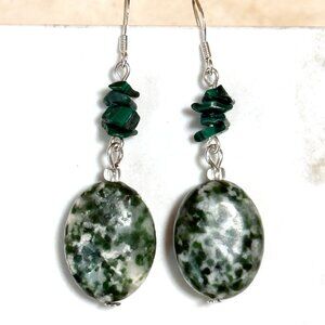 Genuine Green Tree Agate & Malachite Gemstone Sterling Silver Earrings