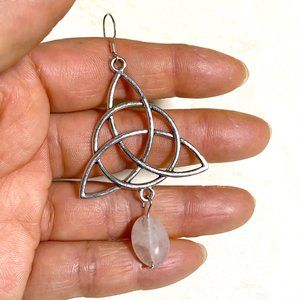 2/$20, Genuine Pink Rose Quartz Celtic Trinity Sterling Silver Earrings