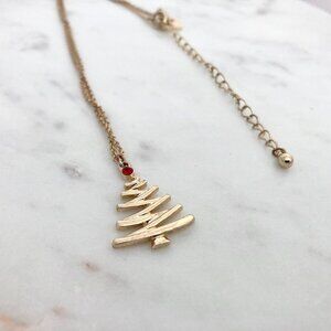 Gorgeous gold tone xmas tree pendant necklace with pretty red rhinestone.