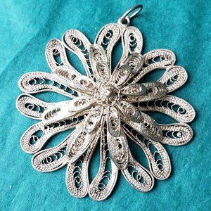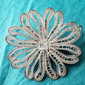2/20$ Gorgeous vintage filigree flower silver tone
