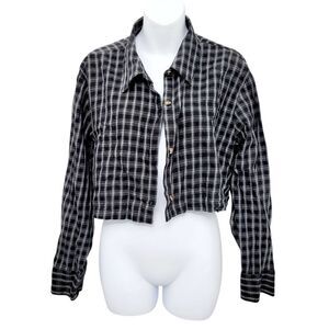 2/$20 H&M Black & White Plaid Pattern Buttons Down Cropped Top Shirt Size: XL