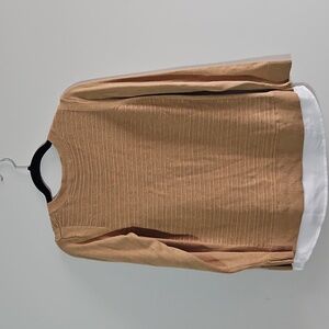 2/$20 Hilary Radley - Tan V-Neck Sweater with Layered Look - Size Small