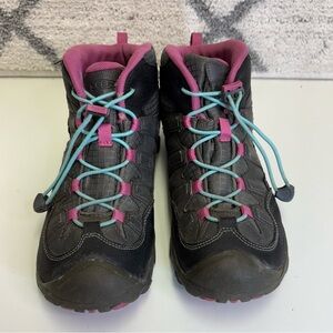 2/$20 Keen Youth 6 Hiking Boots Pink Black With Adjustable Cinch Lock Laces