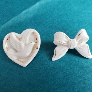 2/20$ Lot of 2 Lenox porcelain brooch dove and bow