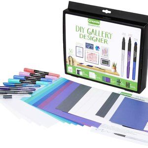 Crayola Signature DIY Gallery Designer Wall Art Set offers an eclectic collection of specially textured papers, 3D origami designs and artistry tools to inspire creation of your own gallery wall. This set features Signature Pearlescent Paint Markers and Gel Sticks to add a special touch or shimmery finish. Features