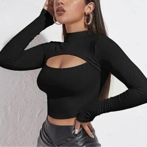 NWT Fashion Nova Long Sleeve Cropped Top Mock Neck Black