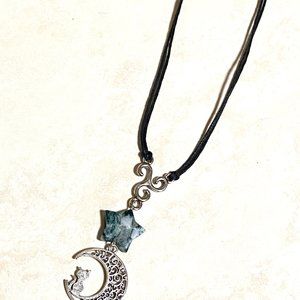 2/$20, Natural Gemstone Tree Agate Star + Cat on the Moon Cord Necklace