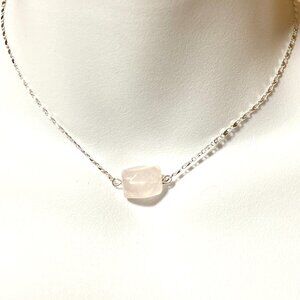 2/$20, Natural Rose Quartz Necklace, Genuine Facet Gemstone & Stainless Chain