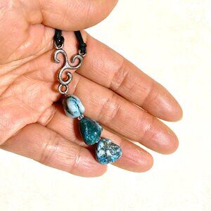 2/$20, Natural Teal Tree Agate Necklace, Genuine Gemstone Lariat Cord Necklace