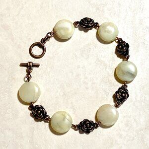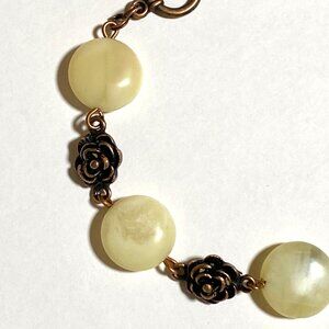 2/$20, Natural Yellow Opal Bracelet, Genuine Gemstone + Copper Rose