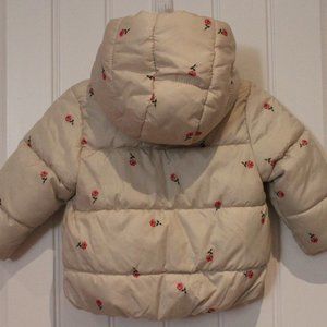2/$20 🏷 Old Navy Off White Floral Puffer Coat Size 12-18m