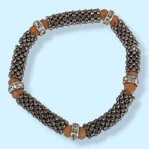 (2/$20) Peach Glass & Rhinestone Stretch Bracelet