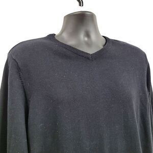 2/$20 Point Zero Black V-Neck Sweater Top 100% Cotton Size: Large
