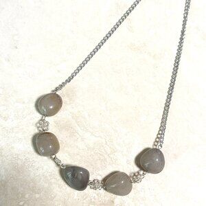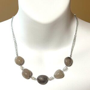 2/$20, Rustic Agate Necklace, Genuine Tumbled Gemstone & Silver Flower Links