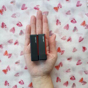This bundle contains two minis of Shiseido's ModernMatte Powder Lipstick in the shade #516 Exotic Red (scarlet red). The perfect size for traveling!