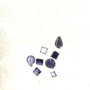 There are 8 tiny genuine high-quality iolite faceted cabochons in this small bottle.