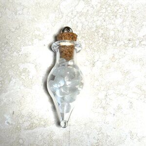 2/$20, Small Glass Bottle Pendant w/ Tiny Genuine Rainbow Moonstone Cabochons