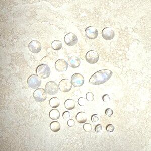 There are 30 tiny genuine high-quality moonstone cabochons in this small bottle.