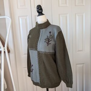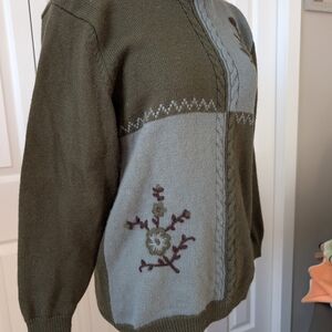 2/$20 Vintage Wool Embroidered Sweater Small Green Fits Small