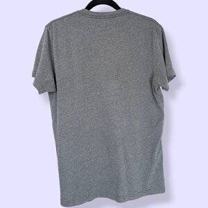 This t-shirt by Volcom is made of a cotton/poly blend (50/50) and is a light heather grey with short sleeves and a crew neck. The shirt is almost completely blank except for a small white embroidered Volcom logo on the left chest. The shirt has normal wear, but no issues affecting wearability.