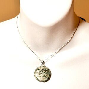 White Green Tree Agate Pendant, Large Coin Shape Genuine Gemstone Pendant