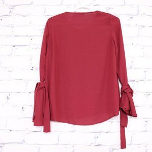 2/$20 pearl tie bell sleeve red blouse b635