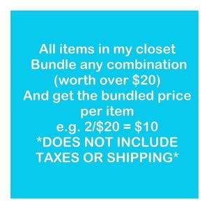 2/$20 *Bundle price- add any combination of items from my closet with a total over $20 and get the bundled price per item
