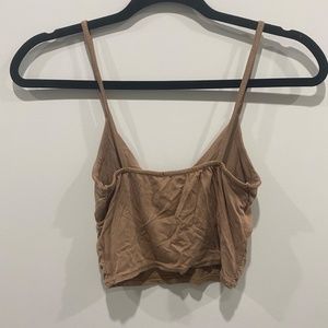 1 brown and 1 black cropped tank top. Tops have never been worn before and are in perfect material. Material is a soft, cloth, stretchy material.