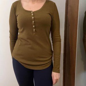Selling two Henley tops, one yellow (size XS) and one green (size S). Only worn a handful of times, very good condition.