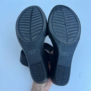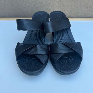 2/$24 Crocs Leather Strap Wedge Sandals Womens Size 6