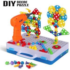 - This trendy bits drill puzzle come with 224 pieces, with the real electric drill, kids can screw and unscrew the nut/bolts in the set.