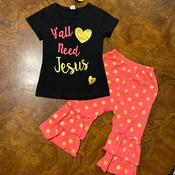 “Y’all need Jesus” outfit , super cute bell bottoms with T Shirt . Size 80Y = 1-2 years