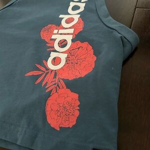 ⚡️2/$25⚡️ Adidas Superher Teal Muscle Crop Top with Coral Floral Print | New
