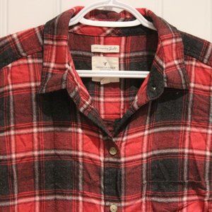 2/$25 🏷 American Eagle Plaid Button Up Shirt Size Large Red & Black Plaid