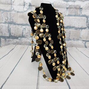 2/$25 Extra Long Necklace Brass Peach Yellow Clear Beads