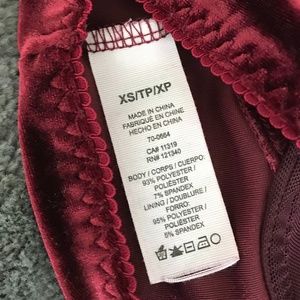 size xs colour maroon adjustable straps stretchy fabric velvet material EUC