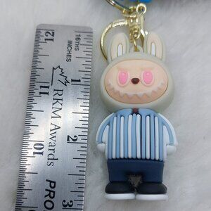 Check out this This is a silicone Labubu blue strip shirt keychain with strap "Strive"