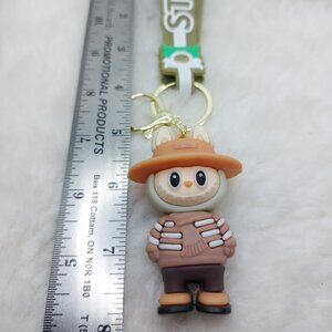 2/$25 Labubu blue with hat and scarf keychain with strap "Strive!"