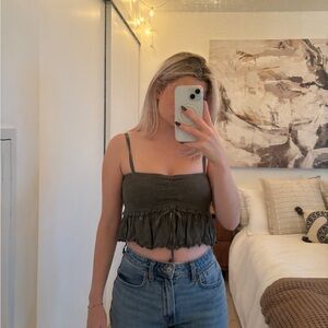 Super flowy with a flattering neckline. It's a size medium, but im an XS/S, so I would say it would fit any of those sizes (it's just more wide/flowy for XS/S)