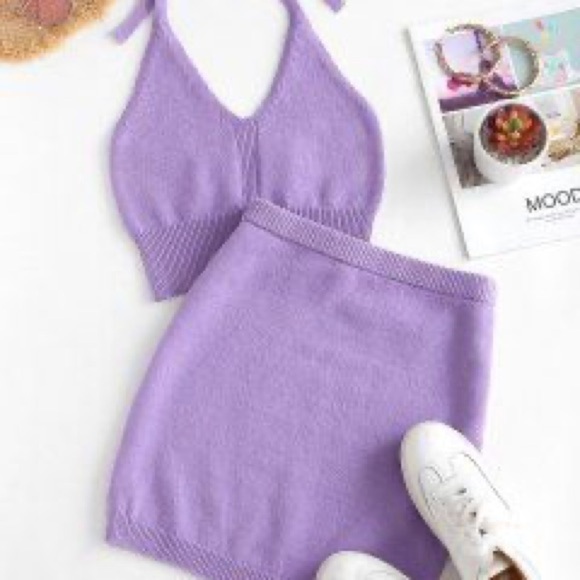Zaful 2-Piece Purple Knit Halter & Mini Skirt Set – Resort / Night Out – Worn Once