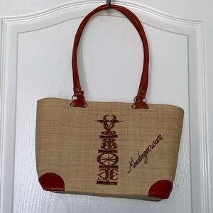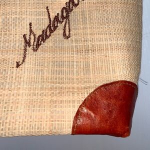 Cute, raffia and leather artisan-made shoulder bag with zippered top closure, lined with inside pocket. Never used. Took a life-changing trip to Madagascar and went a little crazy supporting the local economy 🙂