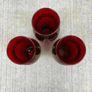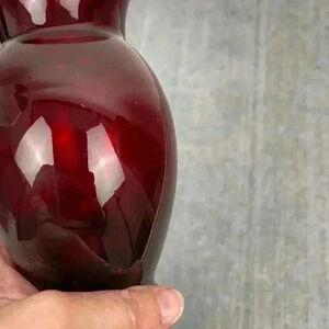 🟢 2/$25 ~ Ruby‎ Red vase etched tulip flowers 6" tall set of 3