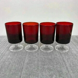 🟢 2/$25‎ ~ Ruby Red wine glasses clear stems France 4.5” tall set of 4