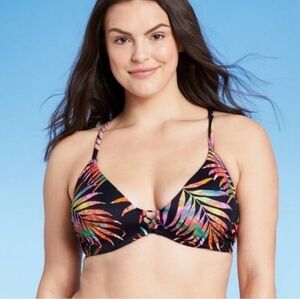 🌻2/$25🌻 Shade & Shore Black Tropical Print Lightly Lined Bikini Top 36B