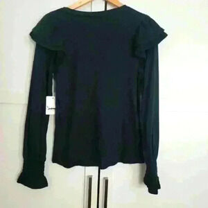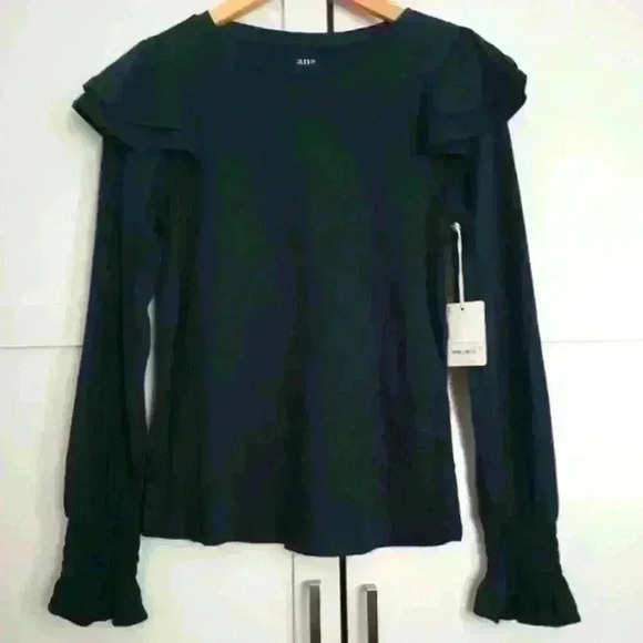 Nwt A.n.a Dark forest green long sleeved shirt. Ruffles on shoulders and on wrists. 100% cotton