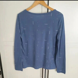 Nwt A.n.a blue Long sleeve v-neck top with geometric shapes on it. 60% cotton, 40% polyester. Length across chest 18", height from shoulder to bottom 24"