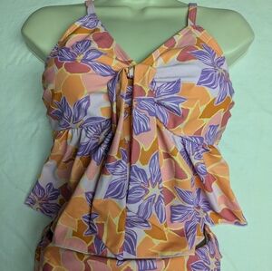 2/$25-Bikini-Flourescent Floral Print Highrise Bottoms & Tie Front Ruffled Tank
