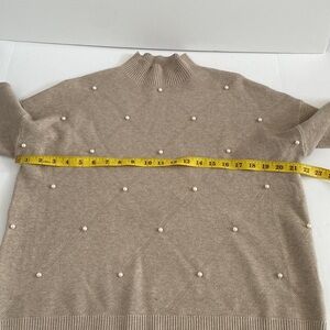 2/$25Elegant Chic formal boxy Beige light brown Sweater Pearl Accents sz medium